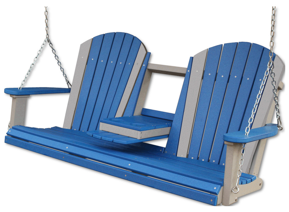 A deluxe version of an old-fashioned classic! Enjoy the gentle, natural swinging on your porch, pavilion or arbor. Center console folds down to reveal two cup holders and a table, or leave it up for a third seat.